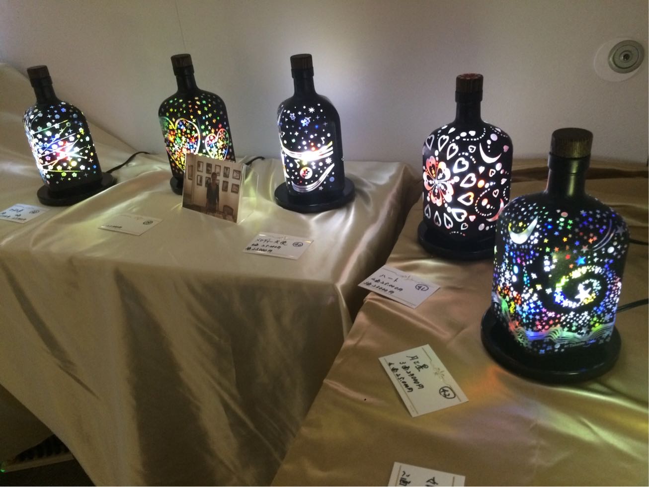 素敵なアロマボトルランプの展示会が開催中です。お好きなボトルランプと記念撮影を撮ることができます。期間中の16日・17日・18日は銀ソーダさんが撮影してくれますよ(^○^)