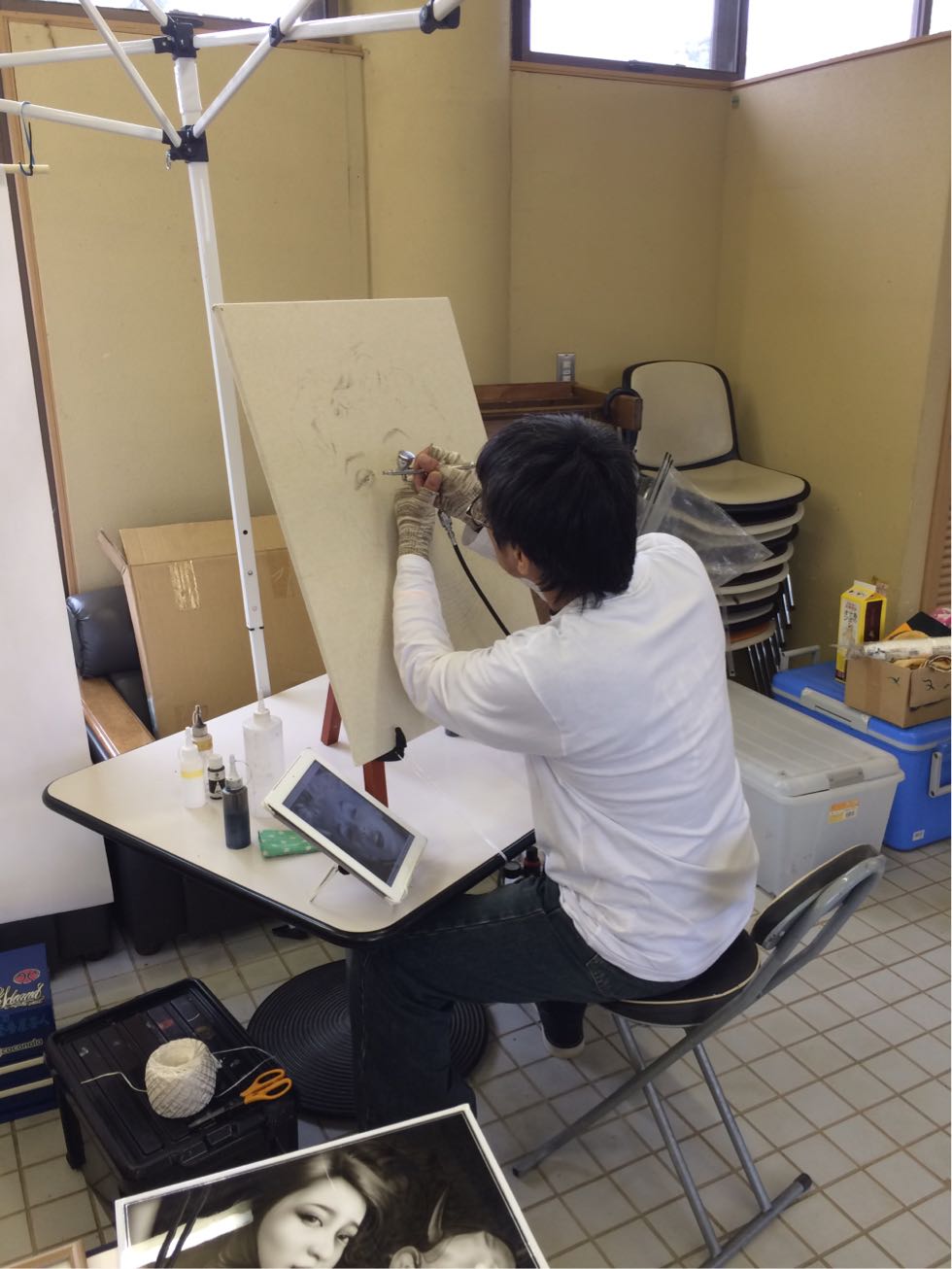 ピンストライパーブースもセッティング完了^o^車両も搬入中〜\(^o^)/