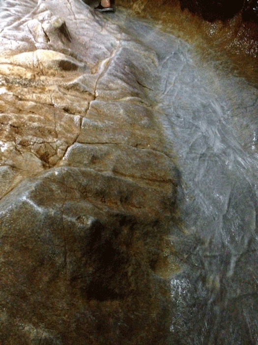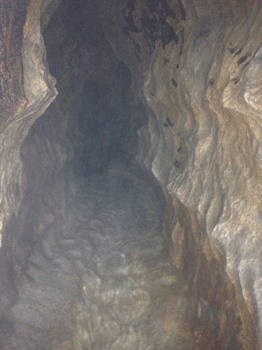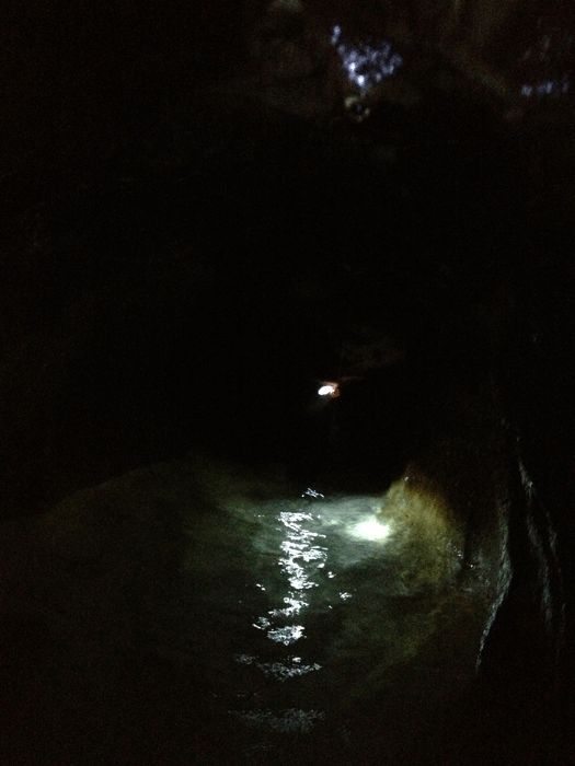 ここから先は狭くて滝のように上から水が降ってくる