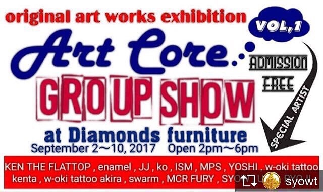 #artcore #exhibition #groupshow #paint #custom#pinstriping #signpainting #tattoo #graffiti #okinawa #diamonds #furniture