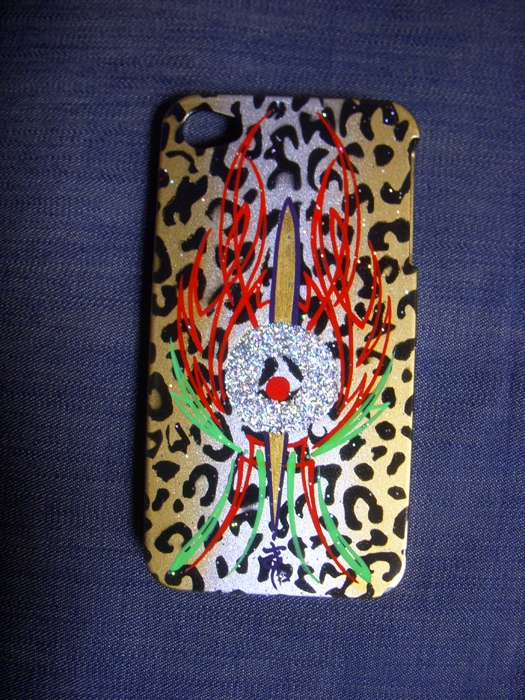 下地をシルバー、ゴールド、ブラックでヒョウ柄を塗装後