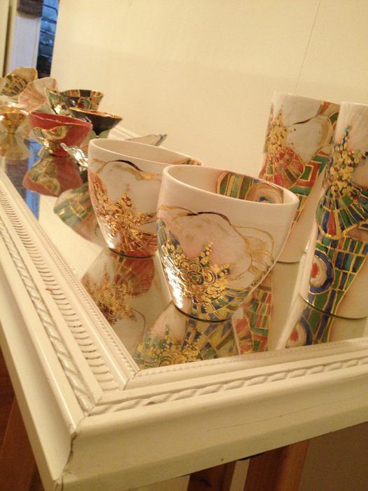 中心にゴールドリーフ(金箔)で、ドラゴンを描き
